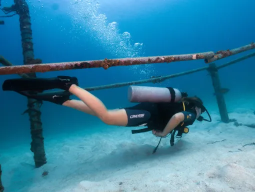 The first dive helps you adjust weights and practice hovering techniques. On the second, you’ll work on neutral buoyancy, efficient trim, and air conservation through proper finning and breathing.